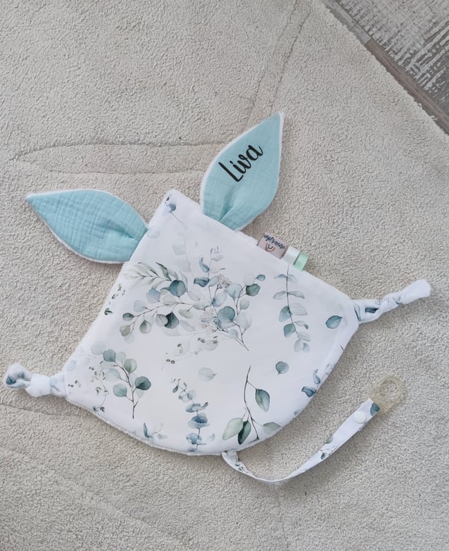 • Si vous le souhaitez je peux personnaliser le doudou en rajoutant son joli prénom dans une oreille du lapin.